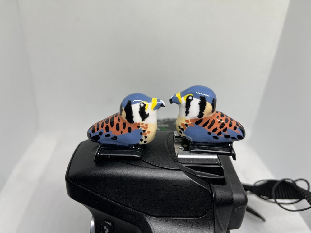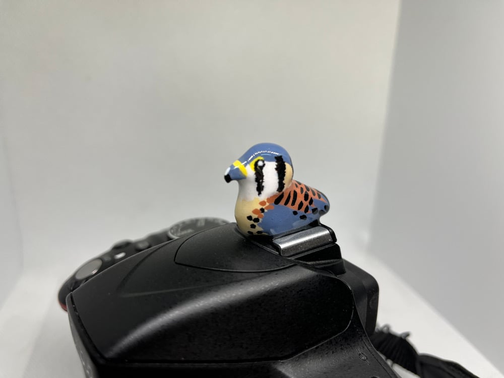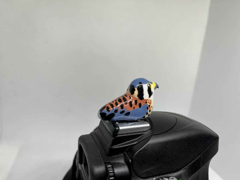 Handmade American Kestrel hotshoe cover. The cover can protect the sensitive hot shoe from dust, moisture, and scratches. Most importantly, it lets you have a little bird friend help you take your photos!